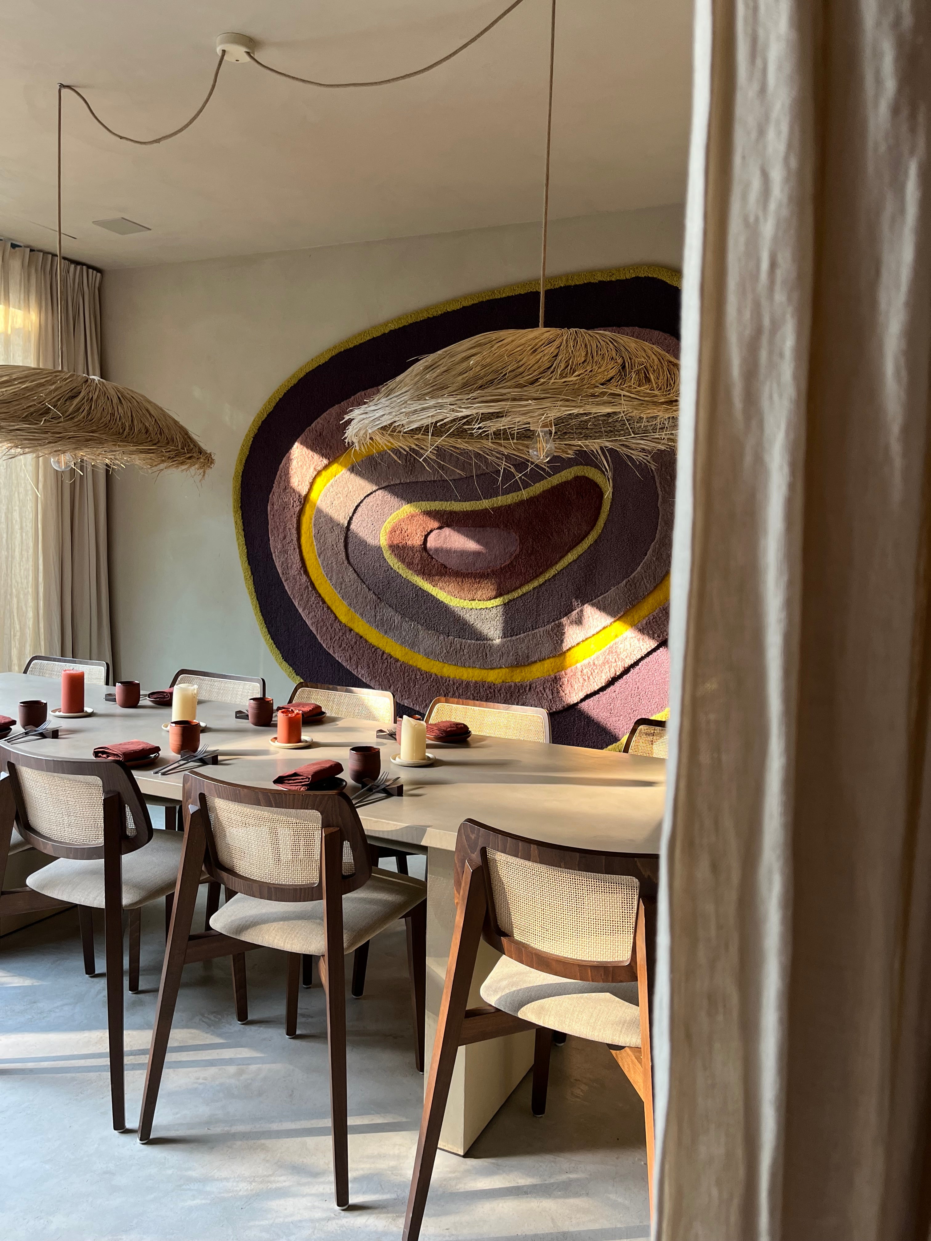 Guided by our love for organic forms and unconventional rugs, the corn shape became a natural fit for the restaurant’s open interior. As choclo is a key ingredient in the kitchen, its form felt like an authentic expression of the restaurant’s roots — both symbolic and sculptural.