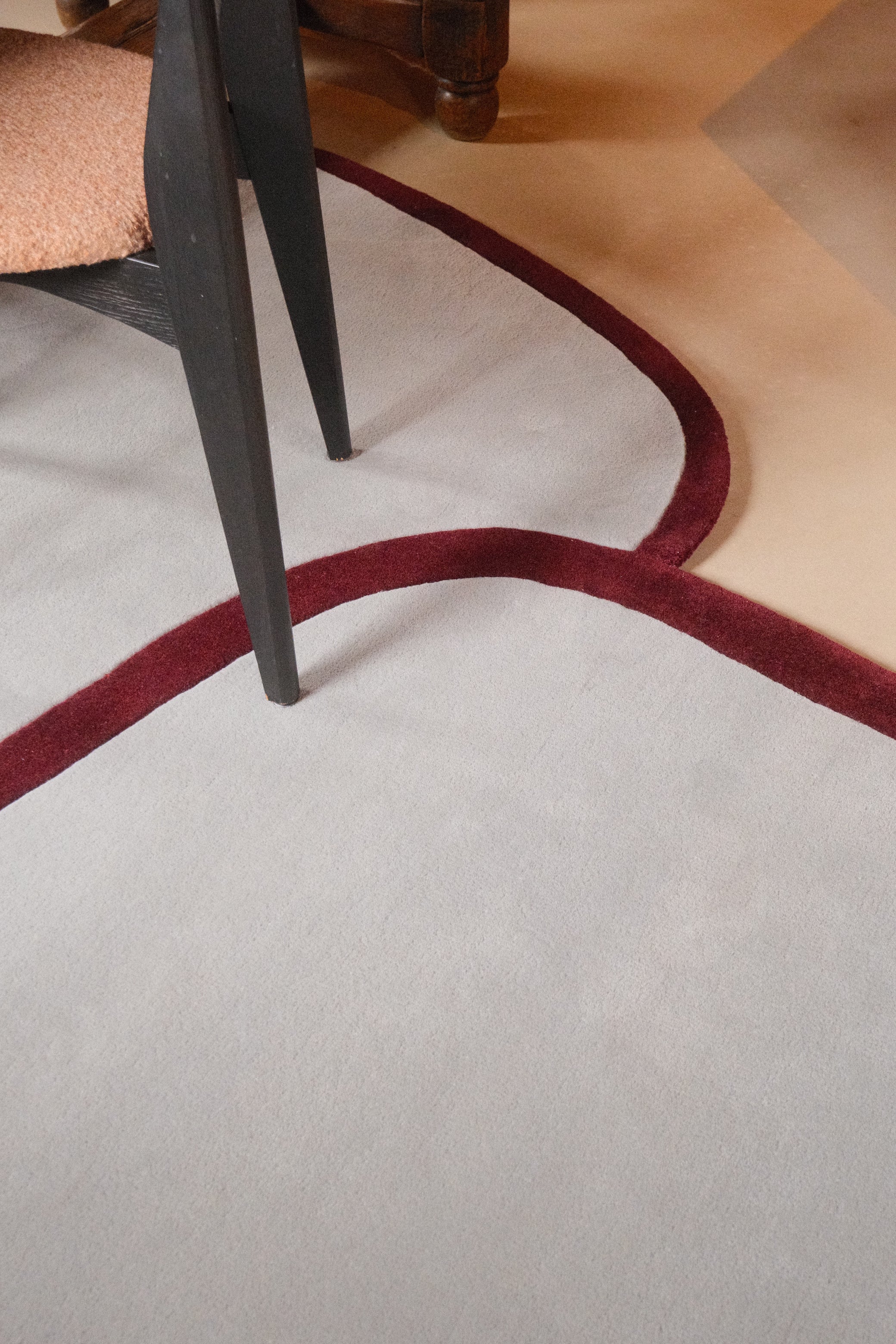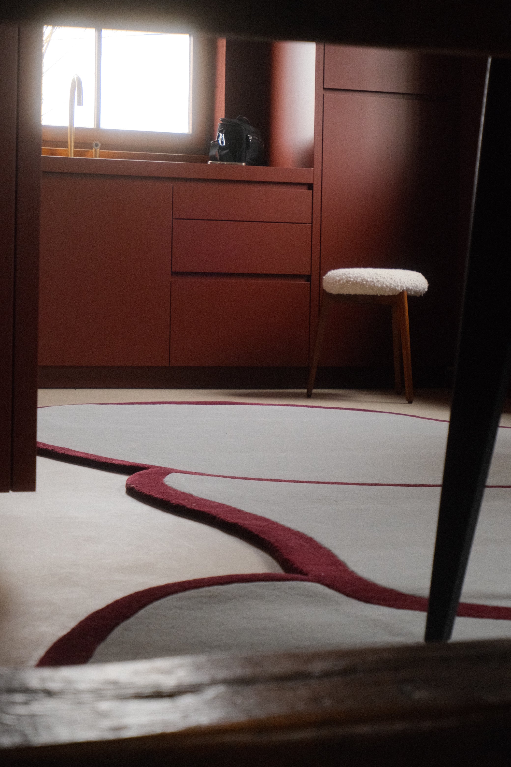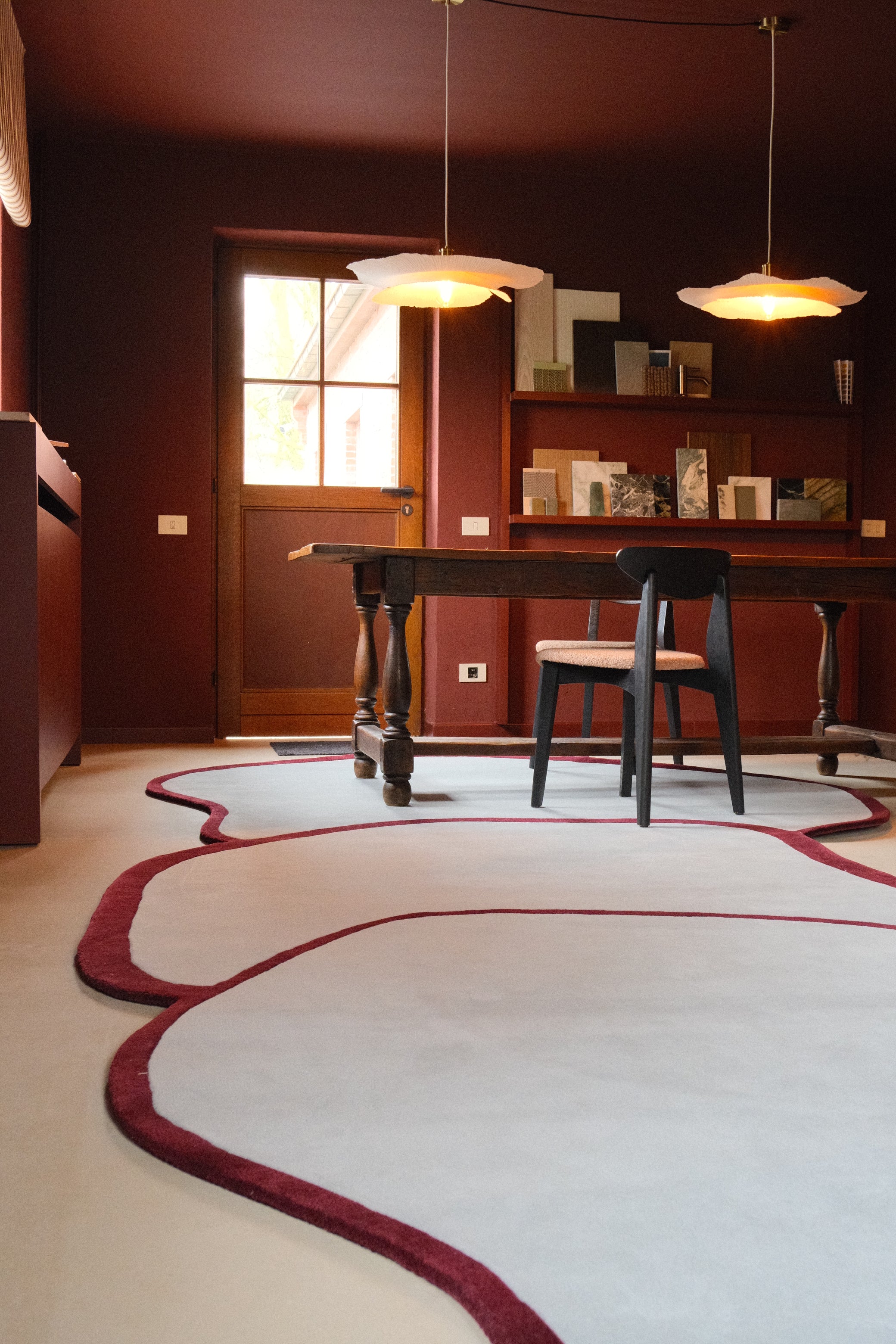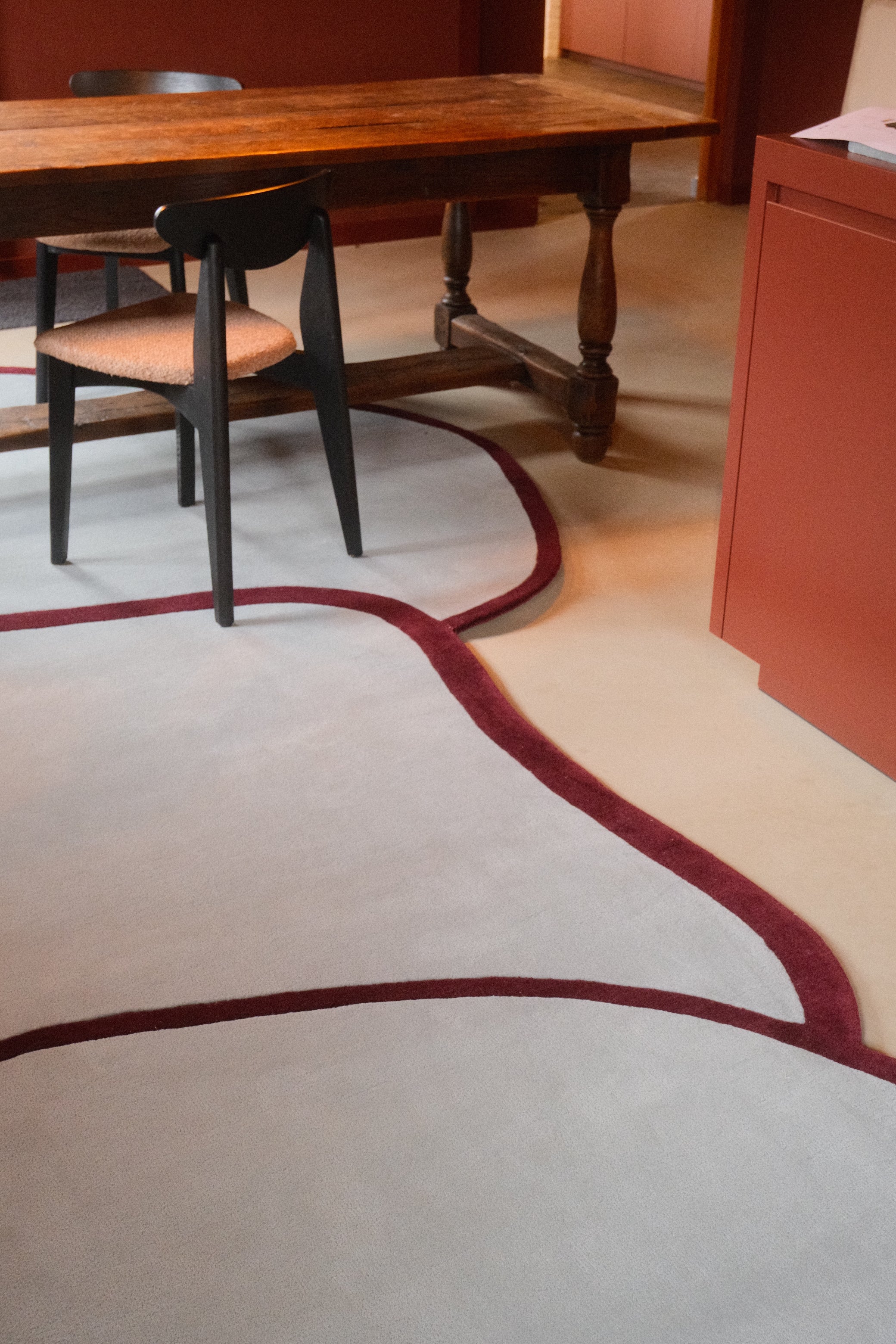 For interior architect Marie Lecluyse, we designed a bespoke carpet that follows the shape of her L-shaped office and anchors the table with quiet balance.